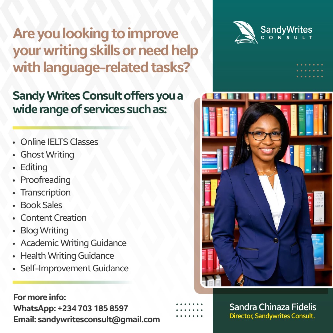 SandyWrites Consult is a registered company with corporate affairs commission. We offer diverse writing and IELTS coaching services.